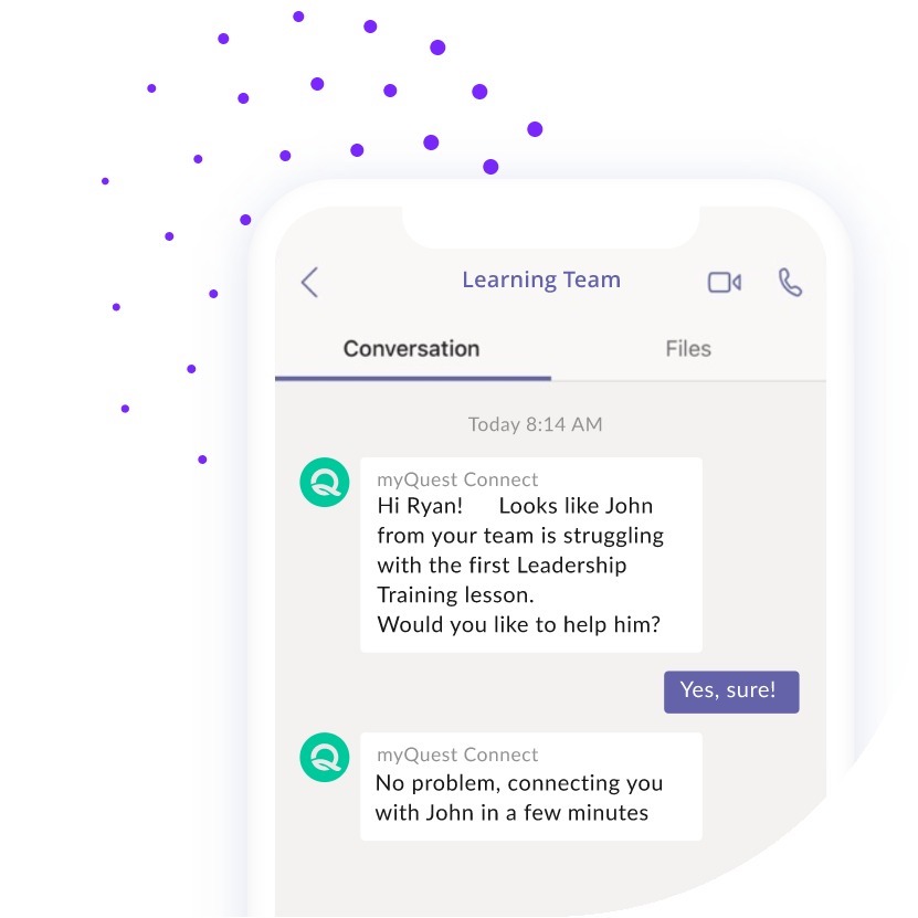 When facing a specific challenge during the sales process (like how to handle questions and objections from customers), salespeople just reach out for help via myQuest Connect and receive an answer from a more experienced colleague quickly.